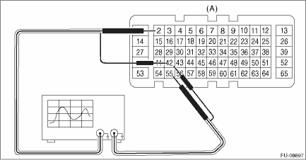 1. CAMSHAFT POSITION SENSOR 1. Disconnect the ground terminal from battery sensor. NOTE 2. Prepare an oscilloscope. 3. While pressing the section (A) shown in the figure, move the lock lever (B) in the direction of the arrow to disconnect the connectors from the ECM in numerical order as shown in the figure.