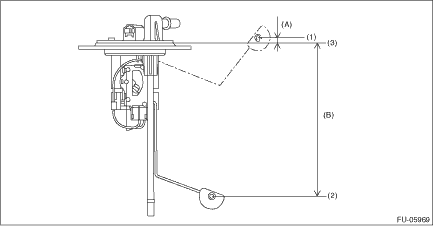 1. Check that the fuel sub level sensor has no damage. 2. Measure the fuel sub level sensor float position. (1) | FULL | (2) | EMPTY | (3) | Datum points |