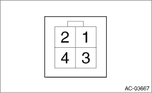 • OUTBACK model Terminal No. | Inspection conditions | Specification | 4 (+) — 3 (−) | Apply battery voltage. | Stop light on | 2 (+) — 3 (−) | Tail / side marker light on | 1 (+) — 3 (−) | Turn signal light on |