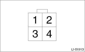 1. Apply battery voltage between the connector terminals to check the lighting condition of the light. • Sedan model Terminal No. | Inspection conditions | Specification | 3 (+) — 2 (−) | Apply battery voltage. | Stop light on | 4 (+) — 2 (−) | Tail / side marker light on | 1 (+) — 2 (−) | Turn signal light on |