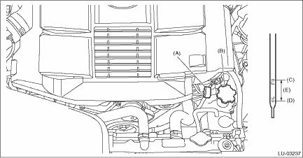 CAUTION: If the engine oil is spilt over exhaust pipe or the under cover, wipe it off with cloth to avoid emission of smoke or causing a fire. 1. Park the vehicle on a level surface. 2. Remove the oil level gauge and wipe away the oil. 3. Reinsert the oil level gauge all the way. Be sure that the oil level gauge is correctly inserted and properly orientated. 4. Pull out the oil level gauge again, and check both sides of the oil level gauge. Use a lower side to determine the engine oil level. If the engine oil level is below “L” line, check for oil leakage from engine and add oil to bring the level up to “F” line. 5. Start the engine to circulate the oil in engine. 6. After turning off the engine, wait a few minutes for the oil to return to the oil pan before checking the level. NOTE: • To prevent overfilling of engine oil, do not add oil above “F” line when the engine is cold. • As the oil level gauge is used for daily maintenance, “F” line and “L” line is set assuming that the engine is cold.