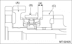 6. Check the clearance between the reverse idler gear and reverse coupling sleeve. If any clearance is not within specifications, replace the shifter fork as required. Clearance (a): 0.50 mm (0.020 in) or less