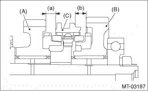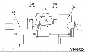 4. Inspect the clearance between the 3rd, 4th drive gear and the coupling sleeve. If any clearance is not within specifications, replace the shifter fork as required. Clearance (a), (b): 7.5 mm (0.295 in)