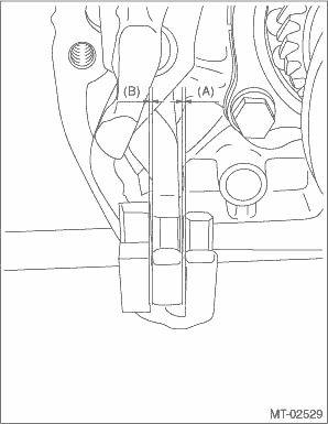 7. Inspect the rod end clearances (A) and (B). If any clearance is not within specifications, replace the rod or fork as required. Clearance (A): 1st-2nd — 3rd-4th 0.1 — 0.9 mm (0.004 — 0.035 in) Clearance (B): 3rd-4th — 5th-6th 0.2 — 1.0 mm (0.008 — 0.039 in)