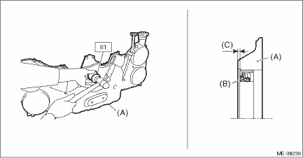 1. Check the chain cover surface for scratches or dents. 2. Check for oil leakage on the chain cover mating surface and installation part of crank pulley. If there is an oil leak from the oil seal, perform replacement with a new oil seal.