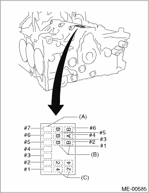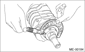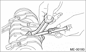 5. Inspect individual crankshaft bearings for signs of flaking, seizure, melting and wear. 6. Measure the oil clearance on each crankshaft bearing using plastigauge. If the measured value is out of standard, replace the defective bearing with an undersize one, and replace or grind to correct the crankshaft as necessary. Crankshaft oil clearance: Standard 0.010 — 0.030 mm (0.0004 — 0.0012 in) | ||||||||||||||||||||||||||||||||||||||||||||||||||||||||||||||||||||||||||||||||||||||||||||||||||||||||||||||||||||||||||||||||||||||||||||
