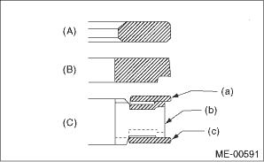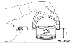 3. When the piston is to be replaced due to general or cylinder wear, select a suitable sized piston by measuring the piston clearance. 4. Measure outer diameter of each piston. Measure the outer diameter of each piston at the height as shown in the figure. (Thrust direction) NOTE: Measurement should be performed at a temperature of 20°C (68°F). Piston grade point H: 37.3 mm (1.4685 in) Piston outer diameter: Standard A: 92.005 — 92.015 mm (3.6222 — 3.6226 in) 0.25 mm (0.0098 in) oversize 92.245 — 92.265 mm (3.6317 — 3.6325 in) 0.50 mm (0.0197 in) oversize 92.495 — 92.515 mm (3.6415 — 3.6423 in)