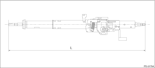 1. UNIT INSPECTION Check the following items, and if there is anything out of standard value, it is considered to be damaged. If so, replace it with a new part. • Measure the whole length of the column assembly - steering. Standard: Overall length L Tilt (measure at the neutral position) and telescopic column (measure at the longest position) 857.1+1.5 −1.5 mm (33.74+0.059 −0.059 in)