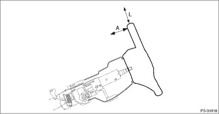 • Check the steering wheel deflection in axial and vertical directions. Specification: Axial deflection A (deflection of steering wheel) Less than 6 mm (0.24 in) Vertical deflection L (runout of steering wheel) Less than 17 mm (0.68 in)
