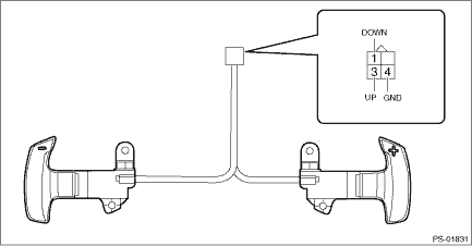1. PADDLE SHIFT SWITCH 1. Measure the resistance between connector terminals. Preparation tool: Circuit tester