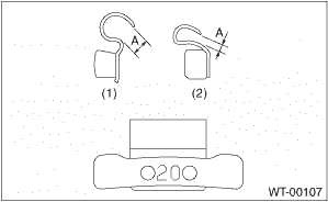 Service limit A: Knock-on type weight for steel wheel: 2.0 mm (0.079 in) Knock-on type weight for aluminum wheel: 5.0 mm (0.197 in) |