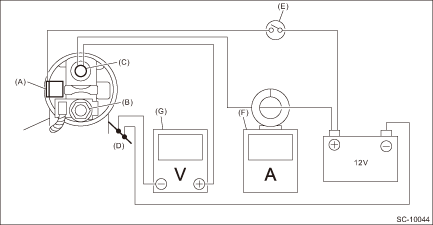 2. YOKE Make sure that the pole is set at the predetermined position. 3. OVERRUNNING CLUTCH Inspect the pinion, and if there is any wear or damage, replace the overrunning clutch. Also, check that the pinion rotates counterclockwise smoothly and does not rotate clockwise. If there is any fault, replace the overrunning clutch. CAUTION: To prevent spilling of grease, do not clean the overrunning clutch with oil. 4. BRUSH AND BRUSH HOLDER 1. Visually check the brush. If there is any abnormal wear or cracks, replace the brush. 2. Measure the length of the brush. If it exceeds service limits, replace the brush. Brush length: Standard 12.3 mm (0.484 in) Limit 7.0 mm (0.276 in)