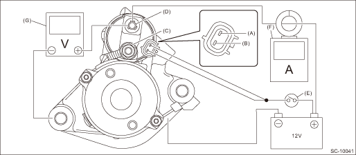• Model with Auto Start Stop 1. Connect the battery positive terminal to the switch assembly SL1 (pinion terminal), and connect the battery negative terminal to the starter body. Then, if the pinion protrudes, it is normal. 2. Connect the battery positive terminal to the switch assembly SL2 (contact terminal) and connect the battery negative terminal to the starter body. Then, if a click sound is heard inside the magnet switch and there is continuity between B terminal and M terminal, it is normal.