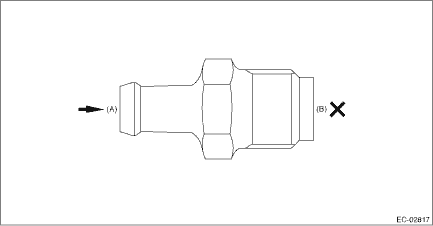 1. PCV VALVE 1. Check that the PCV valve has no deformation, cracks or other damages. 2. Check that air is discharged from (B) when air is blown into (A).