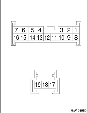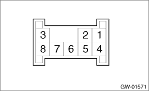 Terminal No.ContentsMeasuring conditionStandard1 ←> Chassis groundBattery power supplyAlways8 — 16 V2 ←> Chassis groundIgnition power supply (main)Ignition switch ON8 — 16 V3 — — — 4 — — — 5 — — — 6CAN H (CAN communication line) — — 7CAN L (CAN communicatio ...