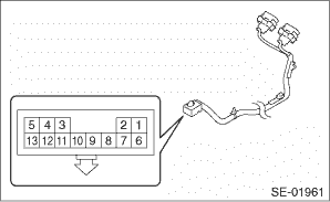 3. CHECK SEAT HEATER FUSE Remove the seat heater fuse, and then visually check. Is the fuse blown out- • Yes > Replace the fuse. • No > Check the power supply and ground circuits. 4. CHECK POWER SUPPLY AND GROUND CIRCUIT 1. Check power supply circuit (1) Disconnect the seat heater control module harness connector. (2) Measure the voltage between harness connector terminal and chassis ground. Connector & terminal (R49) No. 14 (+) — Chassis ground (−): Is the voltage 10 V or more- • Yes > Go to step 2. • No > Repair or replace the harness. 2. Check power supply circuit (1) Turn the ignition switch to ON. (2) Measure the voltage between harness connector terminal and chassis ground. Connector & terminal (R49) No. 5 (+) — Chassis ground (−): Is the voltage 10 V or more- • Yes > Go to step 3. • Repair or replace the harness. 3. Check ground circuit Measure the resistance between harness connector terminal and chassis ground. Connector & terminal (R49) No. 7 — Chassis ground: (R138) No. 9 — Chassis ground: Is the resistance less than 10 -- • Yes > Go to step 4. • No > Repair the harness. 4. Check harness Measure the resistance between seat heater control module terminal and seat heater switch - rear terminal. Connector & terminal (R53) No. 14 — (R138) No. 1: (R53) No. 16 — (R138) No. 6: (R53) No. 6 — (R138) No. 2: (R53) No. 4 — (R138) No. 5: (R53) No. 2 — (R138) No. 13: (R53) No. 8 — (R138) No. 4: Is the resistance less than 10 -- • Yes > Go to step 5. • No > Repair the harness. 5. Check seat heater module (rear) Check the seat heater module (rear) as a single part. Connector & terminal (R49) No. 7 — Chassis ground: (R138) No. 9 — Chassis ground: Is the inspection result normal- • Yes > Replace the seat heater switch - rear or seat heater control module. • No > Replace the seat heater module (rear). 5. SEAT HEATER MODULE (REAR) 1. Disconnect the seat heater unit connector, and check the continuity between terminals of connector.