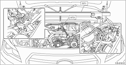 15. Set the ST to vehicle body and lift up the engine unit slightly.