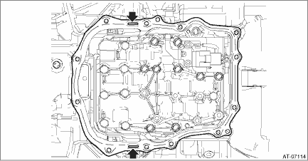 1. Clean the mating surface of valve cover and transmission side. CAUTION: When cleaning the mating surface of the transmission side, be careful not to allow any dust, foreign matter and used liquid gasket to enter the transmission. 2. Check the control valve body for dust and other foreign matter. 3. Install the O-rings. NOTE: • Use new O-rings. • Apply CVTF to the O-rings.