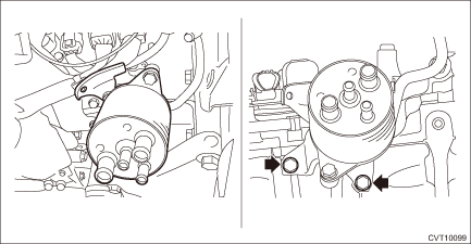 3. Install the CVTF inlet hose and CVTF outlet hose. NOTE: Use the new CVTF inlet hose and CVTF outlet hose. • Without CVTF cooler (air cool)
