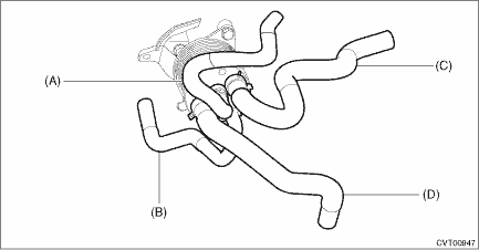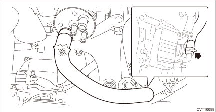 4. Connect the engine coolant outlet hose. • Without CVTF cooler (air cool)