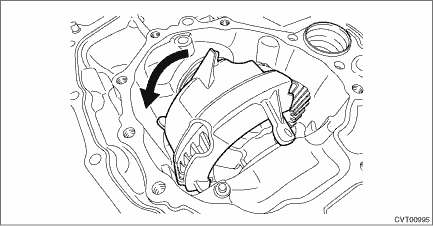 1. Install the front differential assembly to the converter case. NOTE: Be careful not to damage the inside of the case (especially the mounting surface of the differential side retainers).