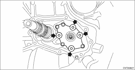 2. Install the plate and the oil pump. NOTE: Apply CVTF to the bolt. Tightening torque: 8.5 N·m (0.9 kgf-m, 6.3 ft-lb)