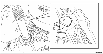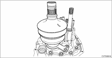 1. Select shims for pulley alignment. Primary Pulley and Secondary Pulley > ADJUSTMENT 2. Install the seal ring to the input shaft. NOTE: • Use new seal rings. • When installing the seal rings, do not expand the seal rings too much. • Apply CVTF to the seal rings.