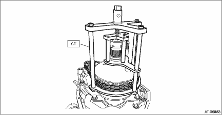 12. Install the reduction drive gear. Reduction Drive Gear > INSTALLATION 13. Select the reduction drive gear shim. Reduction Drive Gear > ADJUSTMENT 14. Install the transmission case. Transmission Case > INSTALLATION 15. Install the transmission control device. Transmission Control Device > INSTALLATION 16. Install the oil strainer and oil pan. Oil Pan and Strainer > INSTALLATION 17. Install the reduction driven gear assembly. Reduction Driven Gear > INSTALLATION 18. Install the transfer driven gear assembly. Transfer Driven Gear > INSTALLATION 19. Install the transfer clutch assembly. Transfer Clutch > INSTALLATION 20. Install the parking pawl. Parking Pawl > INSTALLATION 21. Install the extension case. Extension Case > INSTALLATION 22. Install the inhibitor switch. Inhibitor Switch > INSTALLATION 23. Install the secondary speed sensor. Secondary Speed Sensor > INSTALLATION 24. Install the primary speed sensor. Primary Speed Sensor > INSTALLATION 25. Install the turbine speed sensor. Turbine Speed Sensor > INSTALLATION 26. Install the transmission harness. Transmission Harness > INSTALLATION 27. Install the control valve body. Control Valve Body > INSTALLATION 28. Install the air breather hose. Air Breather Hose > INSTALLATION 29. Install the transmission assembly. Automatic Transmission Assembly > INSTALLATION |