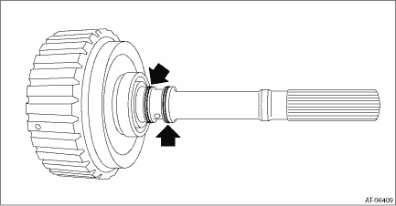 7. Install the seal ring to the transfer driven gear assembly. NOTE: • Use new seal rings. • When installing the seal rings, do not expand the seal rings too much. • Apply CVTF to the seal rings.