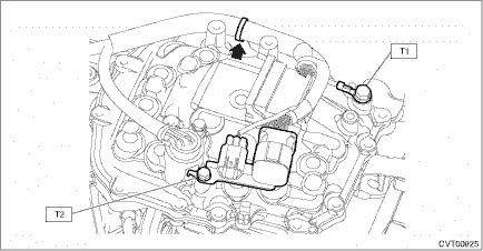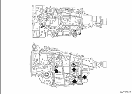 1. Clean the mating surface of valve cover and transmission side. 2. Check the control valve body for dust and other foreign matter. 3. Install the O-rings. NOTE: • Use new O-rings. • Apply CVTF to the O-rings.
