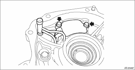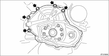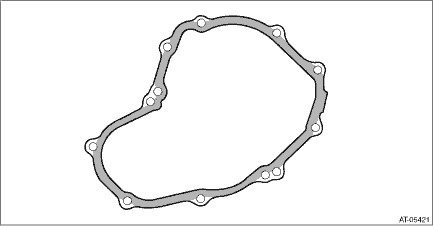 8. Apply liquid gasket seamlessly to the mating surface of converter case cover. Liquid gasket: THREE BOND 1215B or equivalent