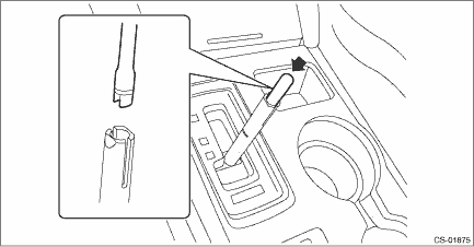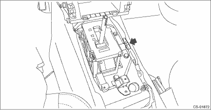 9. Shift the select lever to “N” range. 10. Install the console front side cover assemblies RH and LH. Console Box > INSTALLATION 11. Install the console box. Console Box > INSTALLATION 12. Install the console front cover assembly. Console Box > INSTALLATION 13. Insert the rod COMPL in the direction shown in the figure. CAUTION: Be careful not to insert the rod COMPL in the wrong direction by 90°.