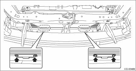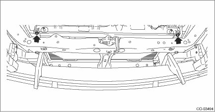 8. Install the radiator upper bracket LH and the radiator upper bracket RH. Tightening torque: 12 N·m (1.2 kgf-m, 8.9 ft-lb)