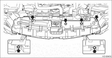 16. Install the under cover. Front Under Cover > INSTALLATION 17. Lower the vehicle. 18. Attach the grille bracket.