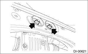 11. Install the mass damper with a new self-locking nut. (2.5 L OUTBACK model) Tightening torque: 50 N·m (5.1 kgf-m, 36.9 ft-lb)