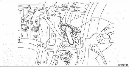 1. Before installation, check the drive shaft assembly. Front Drive Shaft > INSPECTION 2. Replace the differential side retainer oil seal with a new part. • MT model: Differential Side Retainer Oil Seal > REPLACEMENT • CVT model: Differential Side Retainer Oil Seal > REPLACEMENT Differential Side Retainer Oil Seal > REPLACEMENT CAUTION: After pulling out the drive shaft assembly, be sure to replace with a new oil seal. 3. Insert the drive shaft assembly into the hub spline, and pull it into the specified position. CAUTION: Do not hammer the drive shaft assembly when installing. 4. Tighten the new nut - axle temporarily. 5. Using the ST, install the front drive shaft assembly to the transmission. Preparation tool: ST: OIL SEAL PROTECTOR (28399SA010)