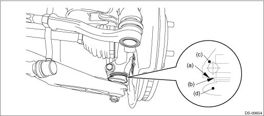 6. Install the ball joint assembly to the housing assembly - front axle. CAUTION: Before tightening, make sure the bottom surface of the housing assembly - front axle and the stepped section of ball joint are in contact. Tightening torque: 50 N·m (5.1 kgf-m, 36.9 ft-lb)