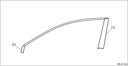 • Do not reuse the weather strip outer. Always replace with a new part. 1. FRONT DOOR 1. Apply the front door sash tape - rear from the top of the vehicle towards the bottom as shown in the figure (a).