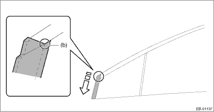 3. Apply the front door sash tape - front from the top of the vehicle towards the bottom as shown in the figure (b).