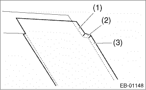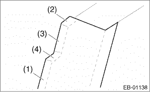 CAUTION: • Do not reuse the removed door sash tape. Replace it with a new tape. • When applying tape, use a spatula, etc. to apply evenly, pushing it against the sash to make sure that no air bubbles are formed. If air bubbles are formed, reapply the tape. • If the tape is wrinkled, etc. during application, replace the tape. • Turning points and ends of the tape will be a cause for peeling if the pressure is insufficient during application, so make sure to push down on the tape firmly when applying. • There are locations where the tape ends will overlap each other. When applying the tape, be careful of the order of their application. • Front