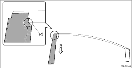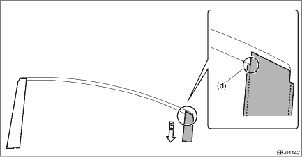 3. Apply the rear door sash tape - rear from the top of the vehicle towards the bottom as shown in the figure (d).