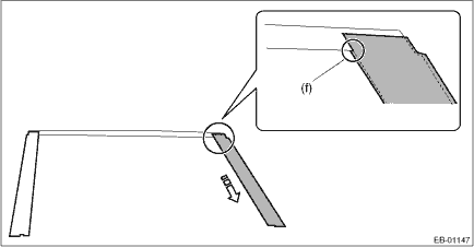 3. Apply the rear door sash tape - rear from the top of the vehicle towards the bottom as shown in the figure (f).