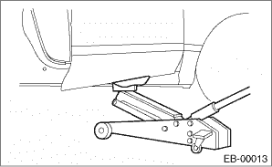 1. FRONT DOOR PANEL 1. Put a wooden block and the like on a jack and place the panel assembly - front door on it.