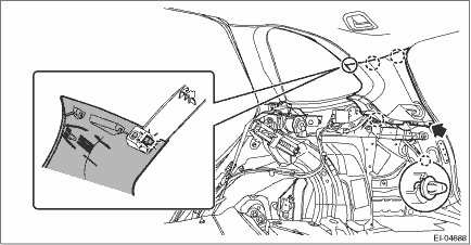 1. Install the trim panel - rear pillar UPR. 2. Install the side pad assembly - backrest. Tightening torque: 53 N·m (5.4 kgf-m, 39.1 ft-lb) 3. Install the rear seat cushion assembly. 4. Connect the ground terminal to battery sensor. NOTE 2. OUTBACK MODEL CAUTION: If the hook - rear seat is disconnected from the vehicle body, make sure to replace the hook - rear seat with a new part to prevent the decline of the fixed force of the seat.