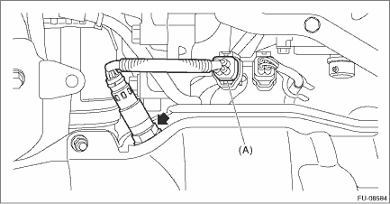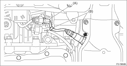 CAUTION: If lubricant is spilt over the exhaust pipe, wipe it off with cloth to avoid emission of smoke or causing a fire. 1. Before installing front oxygen (A/F) sensor, apply anti-seize compound only to the threaded portion of front oxygen (A/F) sensor to make the next removal easier. CAUTION: Never apply anti-seize compound to the protector of front oxygen (A/F) sensor. Anti-seize compound: NEVER-SEEZ NSN, JET LUBE SS-30 or equivalent 2. Install the front oxygen (A/F) sensor. Tightening torque: 21 N·m (2.1 kgf-m, 15.5 ft-lb) 3. Connect the connector (A) of front oxygen (A/F) sensor. 4. Install the clip (B) securing the front oxygen (A/F) sensor harness. (LH side only) • RH side