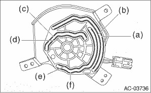 1. When replacing the actuator with a new part, apply a thin coat of grease evenly to the contact area (a) inside the rail of link plate by using approx. 5 mm (0.2 in) width and approx. 0.1 g (0.004 oz) of grease squeezed out from a tube. Also apply a thin coat of grease evenly to the contact areas (b) through (f), by using the same amount of grease to each area.