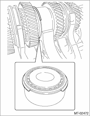 • Face the cutout portion of the snap ring for the double taper roller bearing to the drive pinion shaft assembly.