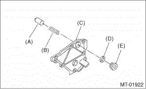 10. Install the shifter arm No. 2, adjusting washers and thrust bearing. CAUTION: Be careful not to damage the oil seal.