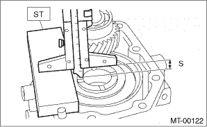 11. Measure the depth “S” between the transfer case + ST and the center differential.
