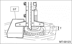 12. Measure the height “T” between the extension case + ST and the transfer drive gear.